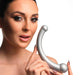 One of your favorite toys just got an upgrade! This crescent dildo comes with powerful vibrations that add to the sweet stimulation that you get with the curved design of this toy. Not only do you have extra leverage as the crescent shape helps you get to your P-spot or G-spot more easily; you also get 3 speeds and 7 patterns of rumbling vibration that you can feel through the dildo! The ends are covered in plush silicone making them softer than hard metal or plastic. The entire toy is covered with smooth, premium silicone that is phthalate-free and body-safe to use with water-based lubricants. As a bonus, you can take this toy into the shower or bathtub! It is rated as IPX7 so it can be submerged for up to 30 minutes without issue. After use, immediately wash it with mild soap and warm water. Spray it with a toy cleaner and pat dry before storing in a cool, dark place. Grab the lube and rub it along the shaft and ends of the toy. Then turn it on and explore the sensation of the vibration patterns and speeds against your palm. Once you've chosen your setting, slip the small, round end inside. If you want to go bigger, choose the other end. Hold the toy so the crescent ends are pointed towards your belly button and start to rock the toy back and forth, applying and releasing pressure until you feel a build up of excitement, pleasure, and internal pressure within. As you milk your prostate or your G-spot, allow yourself to play with different angles and speeds! Measurements: Overall length: 8 inches. Small end: 0.9 inch shaft diameter, 1 inch ball diameter. Large end: 1.2 inches shaft diameter, 1.5 inches ball diameter. Materials: Silicone, ABS plastic Color: Black Note: Use only with water-based lubricants.