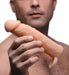 This premium silicone erection enhancer gives you at least 2 inches of added length, and plenty of girth! Realistically molded to look and feel like an actual penis! Just push your shact into the hollow extension sleeve and wrap the stretchy ring around your scrotum for extra security and added stimulation for your balls. Your partner will love experimenting with the bulging veins and bold head, not to mention the size of it!
