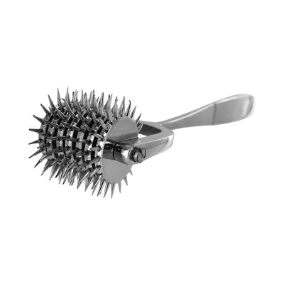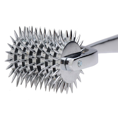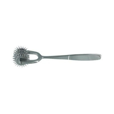 Elevate your sensation play with our stunning seven-wheel pinwheel! Designed for those who crave intensity, each spiked wheel spins independently, delivering thrilling sensations with every roll. Its sleek chrome finish adds a touch of elegance to your toy collection, making it not just a tool, but a statement piece. Measuring approximately 6.25 inches, this new addition comes securely packaged for your convenience. Unleash your desires and explore new heights of pleasure with this must-have accessory!