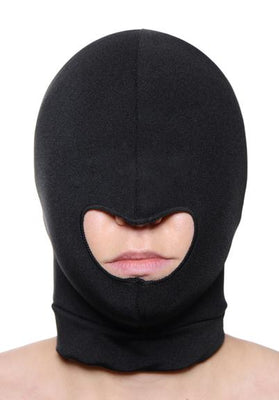 Whether it's for calculated roleplaying or to incorporate other accessories like mouth gags, this black spandex hood invites you to command your domain. One size fits most, offering a versatile and adjustable fit for various head sizes.