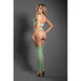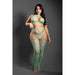 Fantasy Lingerie Sheer Heart Of Glass Lace Knit Halter Tie Top G-String & Gartered Stockings Seaglass Green