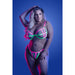 Available in sizes S/M (B/C cup) with bust measurements of 34"-36", waist 26"-28", and hips 36"-38", this vibrant neon pink ensemble is perfect for making a bold statement. Ideal for night outings or special occasions, the UV reactive feature adds an electrifying glow under blacklight, ensuring you stand out.
