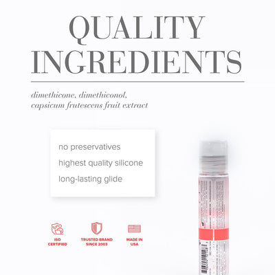 Experience the dual benefits of JO All-in-One Massage Oil and Personal Lubricant with the added sensation of warmth. This product is designed to help you relax and transition seamlessly from a sensual massage to sexual intimacy. JO Massage Glide is silicone based, ensuring a silky smooth massage without the greasiness, oiliness, or tackiness often found with other lubricants.
