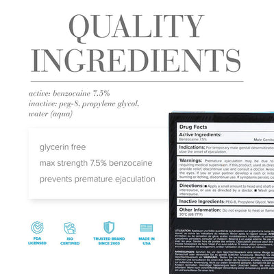 JO Prolonger Spray is perfect for extended play and allows you to enjoy every single stroke together. Formulated using the maximum strength 7.5% benzocaine, our fast-acting, quick-drying spray allows you to last longer for more pleasure and a closer connection.