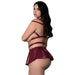 Iris, the goddess of desire, calls to your innermost cravings. From the Lust Fetish collection, this fetish wear dress is a tribute to your sensuality. The Cage Mini Dress and Open G-string set features a caged strappy top and circle skirt bottom with nickel plated studs, imbuing you with the air of seduction. Let Iris be your sorceress on your journey of passion and liberation.