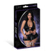 Unleash bold seduction with the Lust Seraphina set from the Lust Fetish collection. This wet look lingerie ensemble is crafted from stretch poly-spandex cire, giving it a sleek, faux leather sheen. The halter-style vest features a buckled front and tie closures for an adjustable fit, while nickel-plated studs, belt buckles, and grommets add daring details. A pleated schoolgirl skirt and full-cut G-string complete this provocative look. Designed for those who love to dominate attention, this set is a must-have for any fetish-inspired collection.