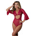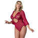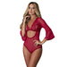 The Black Cherry 3/4 Sleeve Playsuit is a dramatic fishnet and lace lingerie teddy designed to stand out in any lingerie collection. This style combines soft, stretchy fine fishnet with romantic floral lace for a sultry yet refined look. Features include a lace bodice with eye-catching front cutout, playful bell sleeves, satin bow detail, and full back coverage for a flattering silhouette. This versatile teddy performs well as a romantic gift item, statement piece, or fashion-forward lingerie option that appeals to the trend-conscious.