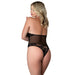 The Black Cherry Halter Teddy is a bold and seductive lingerie halter teddy that delivers high-impact visual appeal. Crafted from a sultry mix of soft fine fishnet and romantic floral lace with scalloped edges, this style combines elegance with an edgy, fashion-forward design. Features include supportive lace cups, an adjustable halter neck strap with swan hook closure, crisscross front straps, flirty cutouts, and satin bow accents.