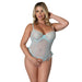 Bring romance and playfulness to your store with the Blue Sky Ruffled Crotchless Playsuit, a stunning baby blue crotchless teddy designed to captivate. Crafted from soft, stretchy flocked polka dot d'esprit mesh and delicate floral lace, this piece features scalloped lace cups with underwire support, adjustable shoulder straps with silver-tone sliders, and flirty ruffles at the hips. A satin bow detail adds a sweet finish, while the open crotch design enhances its allure. Perfect for bridal lingerie or fashionable boudoir collections, this versatile style offers elegance, comfort, and irresistible appeal you will love.