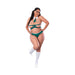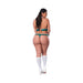 Complete your look with the included matching plaid panty. Designed with a playful split crotch cutout, it adds an element of surprise and intrigue. The teal plaid soft stretch jersey is accented with a touch of innocent white, providing a stunning contrast.