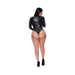 Our carefully designed harness comes with a convenient swan-hook closure at the neck, complemented by chic silver-tone O-rings that add a touch of elegance. The teddy and harness are made from a luxurious blend of 90% Nylon and 10% Spandex, offering both comfort and durability. The sleek wetlook material in jet black not only looks stunning but also feels irresistibly smooth to the touch.