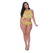 Elevate your intimate apparel collection with the Exposed by Magic Silk set, designed for those who embrace playful elegance. This stunning ensemble features a halter top with adjustable elastic straps adorned with vibrant neon chartreuse sliders, ensuring a perfect fit every time. The back ties add a touch of allure, while whimsical star designs dance across the stretchy mesh fabric, creating a look that's both flirty and fun.