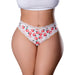 Available in delightful strawberry, blueberry, and peach designs, each thong comes with two (3ml) Wicked Sensual Care edible lube packettes, expertly flavored to complement your chosen print. Slip into this indulgent lingerie and embark on a silky-smooth journey of pleasure. Available sizes: S/M (US 4-10), L/XL (US 12-18), and Queen (US 20-24). Elevate your intimate moments with a touch of sweetness!