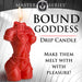 Master Series Bound Goddess Drip Candle Black from XR Brands. This stunning wax candle is sculpted to look like an anatomically correct woman's torso! Bound in rope and showing off every sensual and strong curve and muscle, with perky breasts and a tight backside, it is almost too beautiful to burn! If you do not use it as a decoration, enjoy this synthetic wax candle that has a low melting point and is unscented. Hold it 3 feet away from your partner and let it drip! It will easily and quickly start to flow after lighting it and ensure hours of sensual, exciting and stimulating erotic fun! Test out a small area of skin to see if there is any sensitivities or allergic reactions before covering other erogenous zones. For easy removal, use a scraping device, such as a plastic card, to scrape the wax off their body when done, spank it off with a flogger, comb it, use ice and water, scratch it off with nails, or use natural oils to massage into the skin and hydrate the skin while removing the wax. Keep the wax away from any mucous membranes, keep it outside of the body, and avoid eyes and hair. Make sure to keep the candle away from any flammable materials.There are many ways to enjoy wax play. Take a class to find out how to have fun and stay safe! If you are new to wax play, set up a splash zone and lay down a towel or tarp to protect against wax spills. Test it on your arm or thigh first before trying it on your partner. Start high up and then get closer as you test out temperature and technique. Start by holding the candle 3 feet away from the body to drip wax. Blow out flame before pouring to reduce splashing. Layer the wax over the same spot to increase the intensity. Rub your hand over the wax drops in order to disperse heat. Measurements: overall 4.7 inches in height by 3.1 inches in width by 2 inches in depth. Materials: Synthetic Wax, Microcrystalline Wax, Hydrogenated Styrene, Mineral Oil. Burn time: approximately 2 to 3 hours. Melting temperatures 118 degrees to 122 degrees F. 48 degrees to 50 degrees C. Color: Red. Note: test wax on a small section of skin before trying on any erogenous zones to make sure you are not allergic. Hold from 3 feet above to drip. Keep away from anything flammable! Key features: stunning and beautiful. This wax candle is the rope tied torso of a woman and is so beautiful, you may not even want to burn it! Low melting point. Melts easily so you can start playing soon after the wick is lit. Synthetic wax. This blend of synthetic waxes is designed for wax play scenes. Unscented: keep the temperatures low and the smells neutral with unscented candles! Warranty 30 days.
