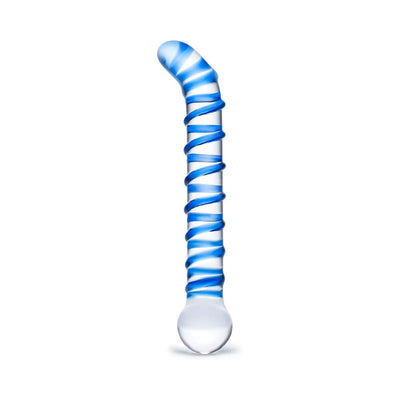 Settle in for a night like no other with our Swirly G-Spot Glas Dildo. Crafted from high-quality borosilicate glass, this elegant dildo features a mesmerizing blue and clear glass design that is not only aesthetically pleasing but also exceptionally durable.