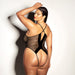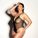 FETISH Finesse Soft Cup Vinyl & Mesh Teddy w/Barbell Black