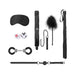 This comprehensive bondage kit includes: