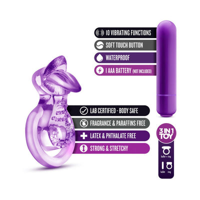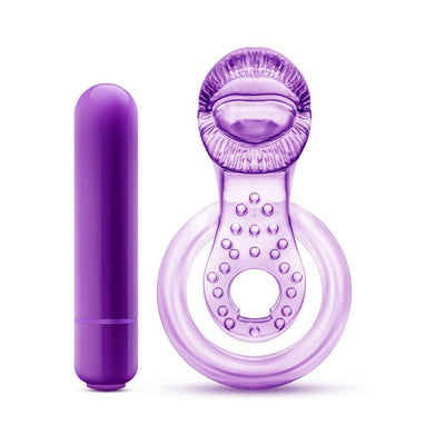 Blush Play with Me Lick it Vibrating Double Strap Cockring - Purple