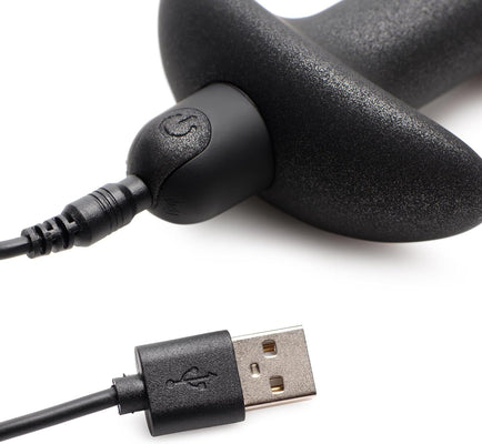Bang your booty with these powerful anal beads! Velvety smooth and flexible enough to keep your anal play comfortable, these supple balls are fit for both anal beginners and experts alike. The tapered tip makes insertion easy for solo play or use with your lover, while the wide base prevents these anal delights from going too far into your backdoor. Control your vibes with the push of a button or with the included wireless remote control. Choose from 4 speeds and 7 patterns of vibes to buzz your booty with each bead. The powerful motor found in the bullet vibe is rechargeable for endless fun - simply insert the USB charging cable when the power runs low for endless fun! Enjoy each and every bead of this accessible anal toy with your favorite water-based anal lubricant! This sultry set of beads is perfect for anal training, improving your masturbation sessions, or for kinky couples who need a buzz in their butt while they perform naughty acts together. The IPX7 waterproof design of these Bang Beads makes it easy to play in the shower for some steamy anal fun, but also makes it easy to clean when the session is over! Clean with warm water and mild soap. Measurements: Overall length without bullet 7.5 inches; insertable length 6.5 inches; widest insertable diameter 1.1 inches. Bullet 3 inches in length, 0.8 inches in width. Materials: Silicone, ABS plastic.