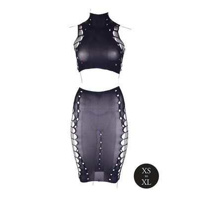 Classiness with some sharp edges, that is the definition of this Kala two-piece. This crop-top and skirt looks rough and stylish from the front, but is tastefully sexy from the side. The open patches give everyone who wears it that perfect shape. Due to the premium quality materials and the perfect stretch, Kala will fit from size XS to XL and feels great on your skin. No matter what the occasion is, this two-piece will leave every spectator speechless.