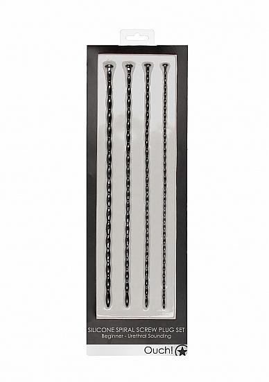Shots Ouch Beginner Urethral Sounding Silicone Spiral Screw Plug Set - Black