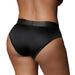 The Vibrating Strap-on High-cut Brief sits high on the thigh into the hip.