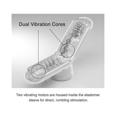 Rumbling vibrations from within the elastomer sleeve bring a sensation from another world to your hands. This innovative experience is powered by a TENGA-engineered technology, featuring not one, but two Vibrating Cores inside the elastomer for direct stimulation.