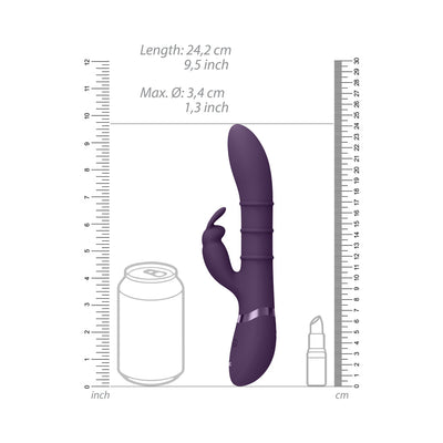 The high class VIVE brand stands for ultimate stimulation through continuous innovation! This top of the range G-spot Rabbit Vibrator boasts a unique feature that will make your toes curl in ecstasy! It has a set of 3 stimulating rings integrated into the smooth, medical grade, silicone shaft that moves up and down for an internal massage like no other. The rings come with 10 different speed modes, while the G-spot stimulator and the Rabbit stimulator both have 10 different vibration modes which give you a mind blowing 1,000 distinct settings to choose from. The VIVE SORA is IPX7 waterproof/submersible and rechargeable. A 150 minutes charge will give you 45 minutes of unbridled pleasure at less than 60dB. Furthermore, this unique and Innovative vibrator has a one touch travel lock & climax button, when you are ready to orgasm, just press the climax button and with one touch all motors go to its strongest setting.