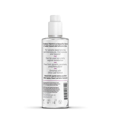 simply® Timeless lube is uniquely formulated to address the specific needs of individuals during the perimenopausal and menopausal stages and beyond. Each formula contains ingredients that can help alleviate dryness and promote a more comfortable and satisfying intimate experience. Each lube contains supportive ingredients like aloe, olive leaf extract, squalane, and Vitamin E. These supportive ingredients are what makes it different from the rest of the simply® line. Like all products under the simply® label, Timeless formulas are free from glycerin, parabens, and propylene glycol. Can also be used as a daily vaginal moisturizer.